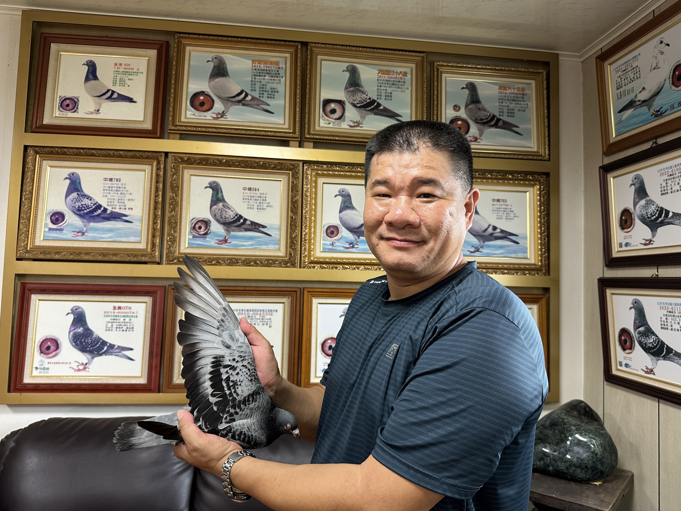 其中最具代表性的功臣,莫過與強豪林沐惠合作的超級種公「昕娣冠軍號」榮獲2013年三重自強冬季10100羽五關綜合冠軍。此鴿不僅自成傳奇,更以雄厚遺傳力,孕育出一代代優秀後代,屢屢在各大賽事中脫穎而出,為鴿舍贏得無數榮耀。昕娣冠軍號家族已成為游董鴿舍的核心血脈,更是其他鴿友夢寐以求的種源。