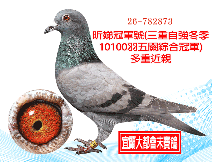 ▲24-501749春季宜蘭大都會四關綜合冠軍(殘2羽伯馬)(第四關單關冠軍,第四關超速第二羽22分鐘,宜蘭地區二會唯二歸返冠軍伯馬)