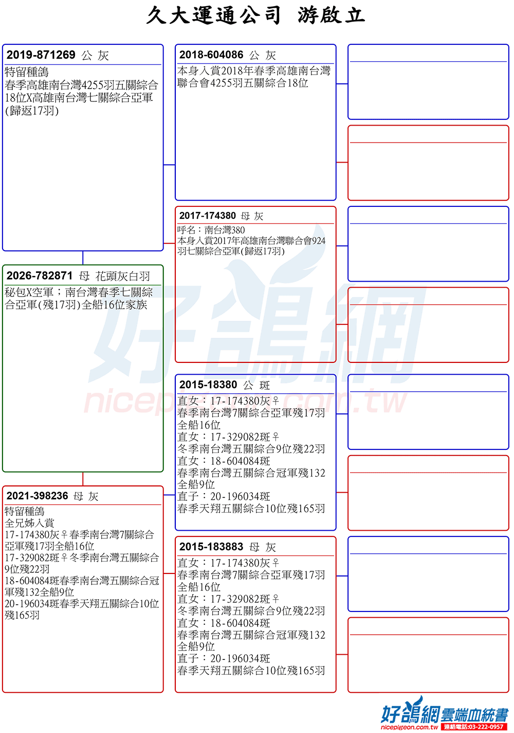 這一次,好鴿網特別邀請游董參與拍賣會,首次釋出多羽「昕娣冠軍號」的家族鴿。這不僅是難得的交流契機,更是鴿友們引進頂級血統、提升鴿舍實力的絕佳良機。憑藉游董數十年穩健作育與屢屢奪冠的實績,相信這批鴿將為各地鴿友帶來新的希望與戰力。