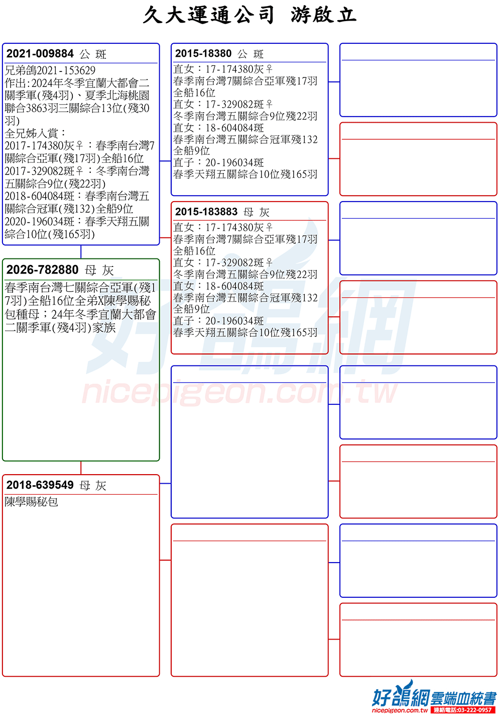 《宜蘭大都會未賽鴿》春季南台灣七關綜合亞軍(殘17羽)全船16位全弟X陳學賜秘包種母;24年冬季宜蘭大都會二關季軍(殘4羽)家族