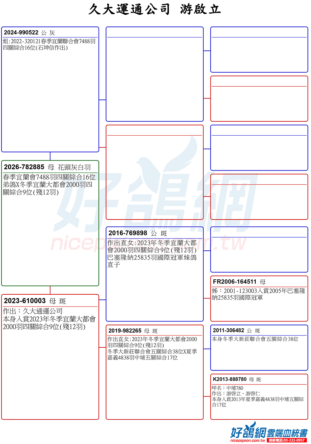 ▲母鴿:2023-610003冬季宜蘭大都會2000羽四關綜合9位(殘12羽)