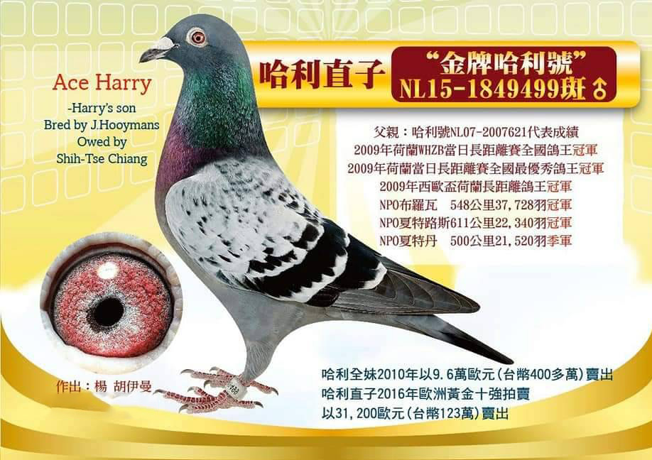 【艾迪詹森原舍】鴿王123(比利時2場全國賽最佳鴿王1位)父親配母親全妹
