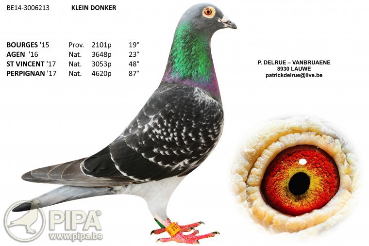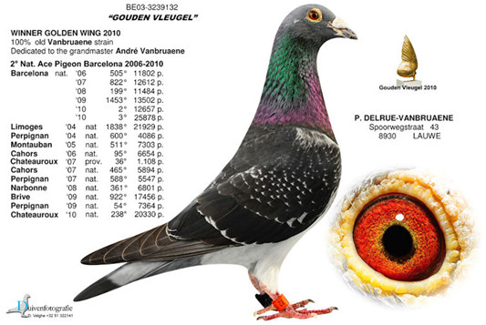 【威廉迪布恩原舍】《紀錄鴿》本身魁夫蘭4830羽23位;父親為豪威中距離幼鴿鴿王3位