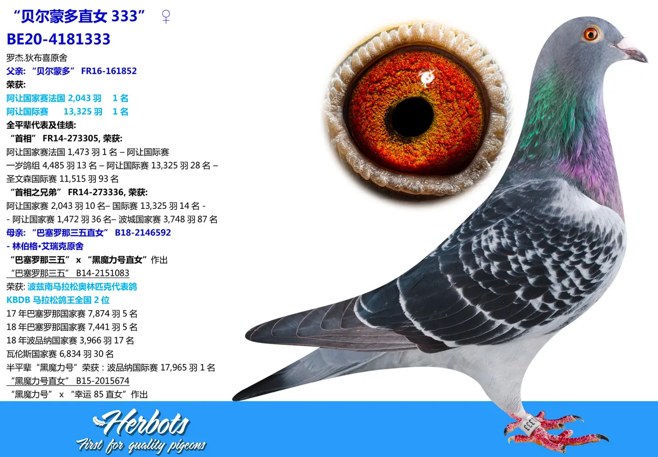 【艾迪詹森原舍】鴿王123(比利時2場全國賽最佳鴿王1位)父親配母親全妹
