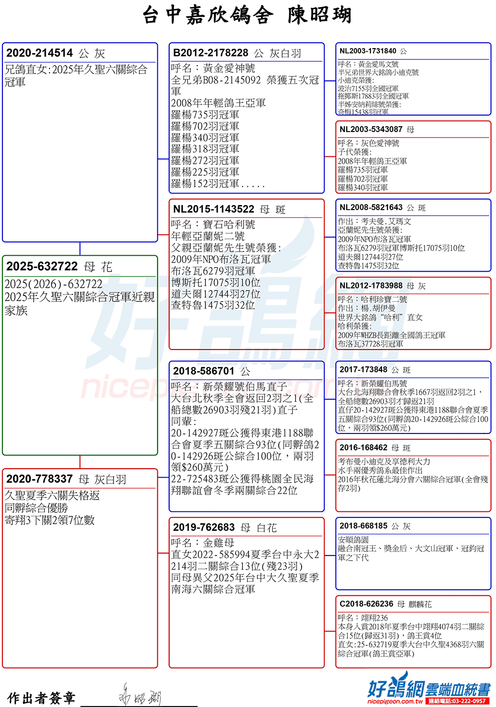 ▲25-632719夏季大台中久聖4368羽六關綜合冠軍(鴿王賞亞軍)