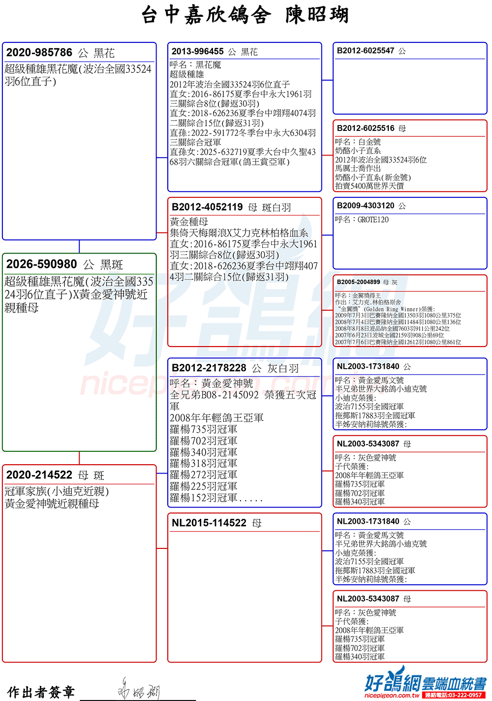 【艾迪詹森原舍】鴿王123(比利時2場全國賽最佳鴿王1位)父親配母親全妹