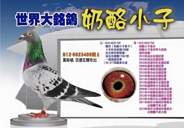 【威廉迪布恩原舍】《紀錄鴿》本身魁夫蘭4830羽23位;父親為豪威中距離幼鴿鴿王3位