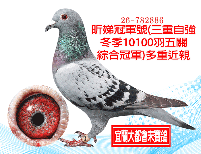 《宜蘭大都會未賽鴿》昕娣冠軍號(三重自強冬季10100羽五關綜合冠軍)多重近親