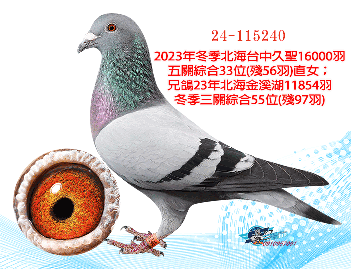 2023年冬季北海台中久聖16000羽五關綜合33位(殘56羽)直女;兄鴿23年北海金溪湖11854羽冬季三關綜合55位(殘97羽)
