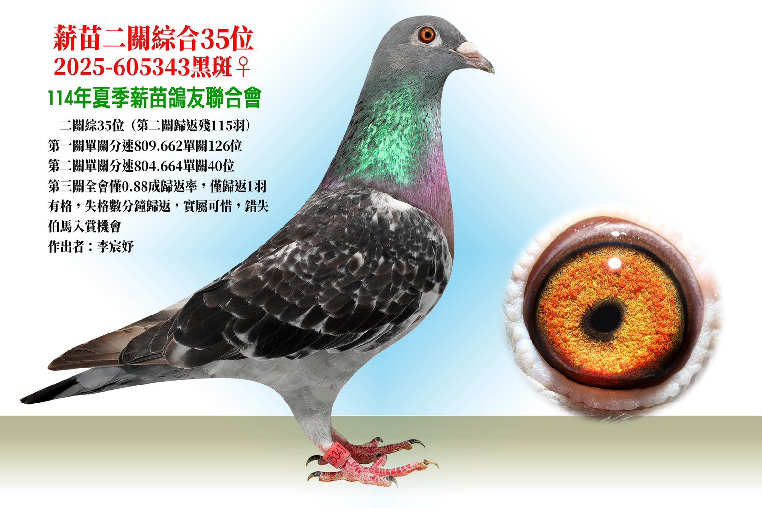 2025夏季薪苗鴿會二關綜合35位(第二關歸返殘115羽)
