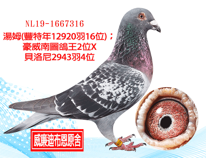 【威廉迪布恩原舍】湯姆(豐特年12920羽16位);豪威南圖鴿王2位X貝洛尼2943羽4位