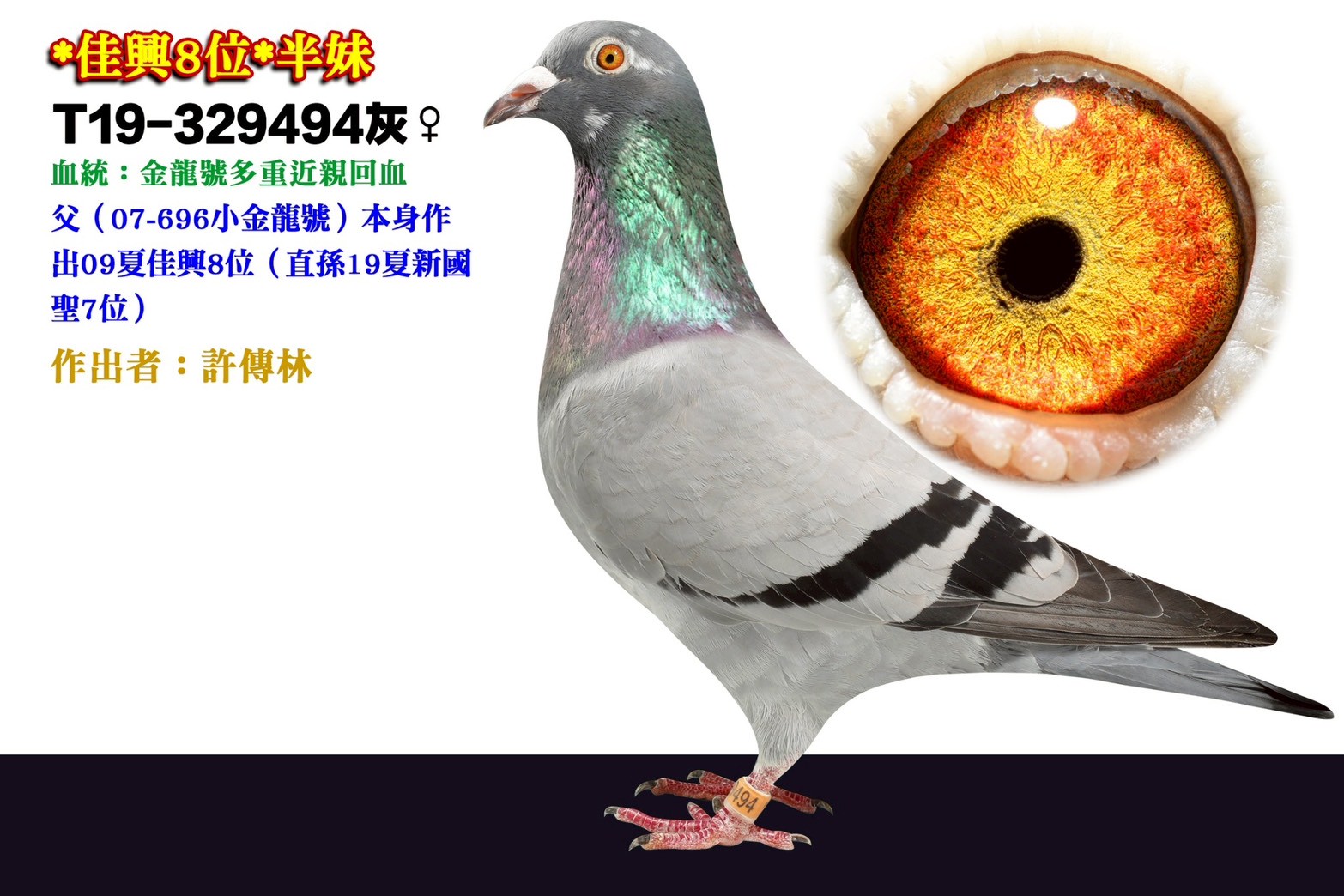 母鴿:T19-329494佳興8位半妹