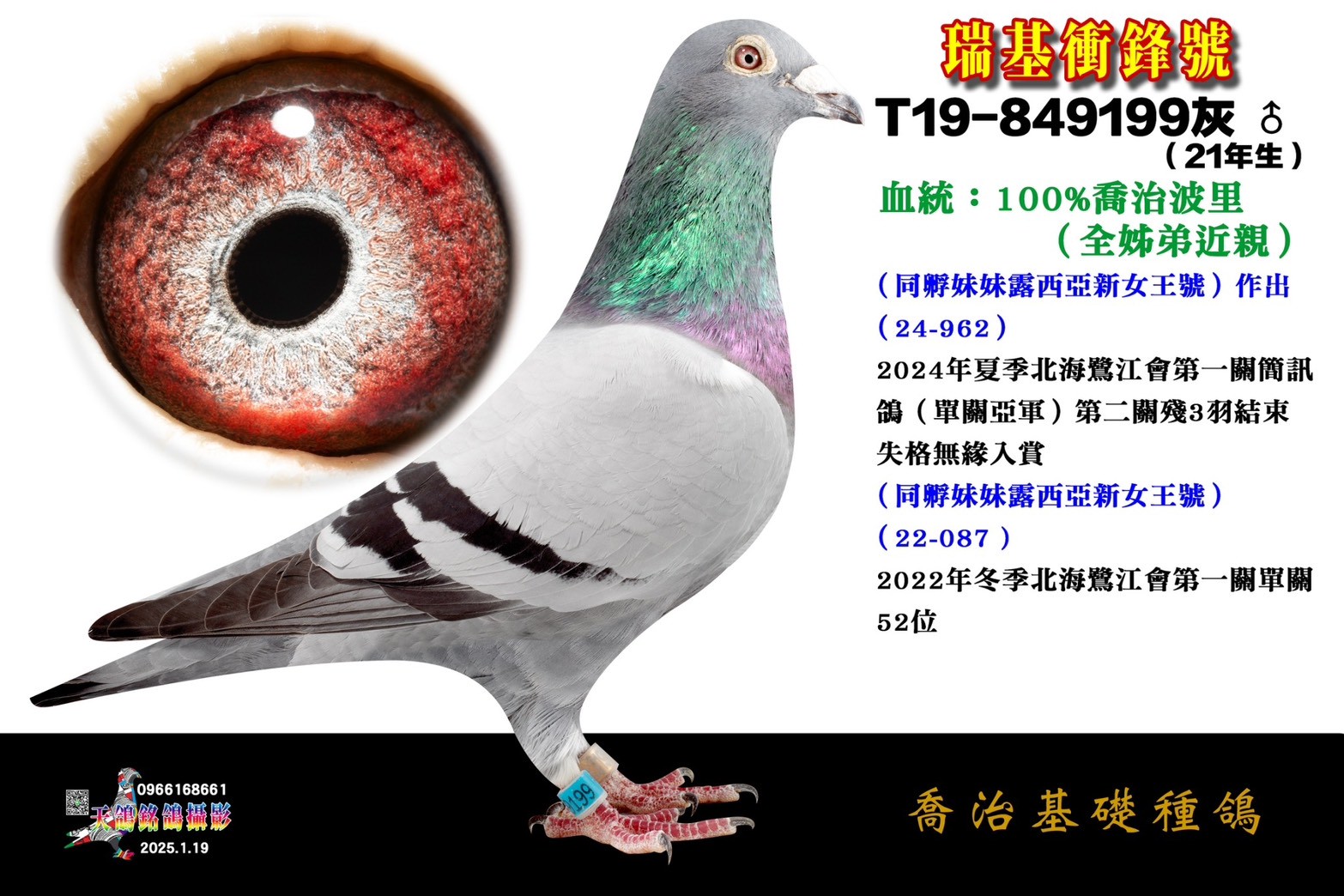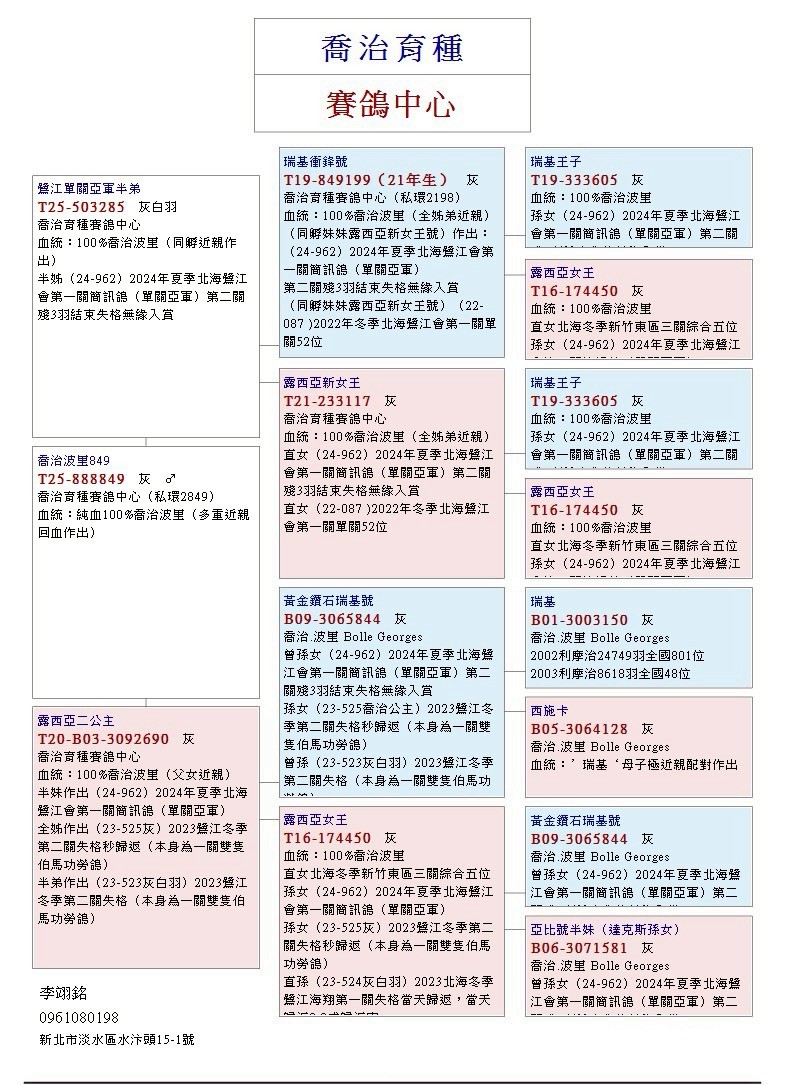 《宜蘭大都會未賽鴿》昕娣冠軍號(三重自強冬季10100羽五關綜合冠軍)多重近親