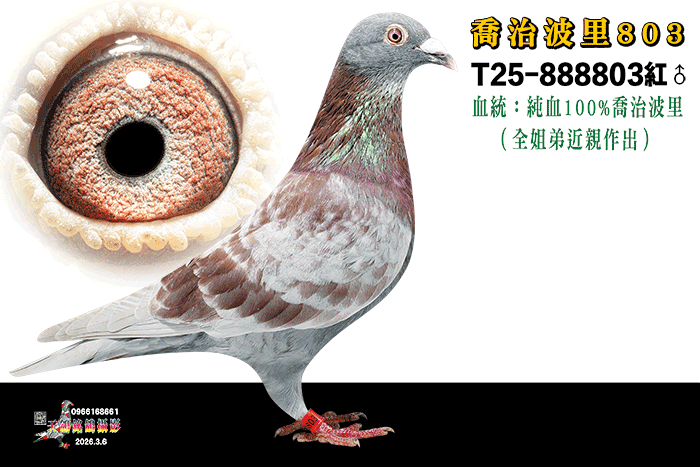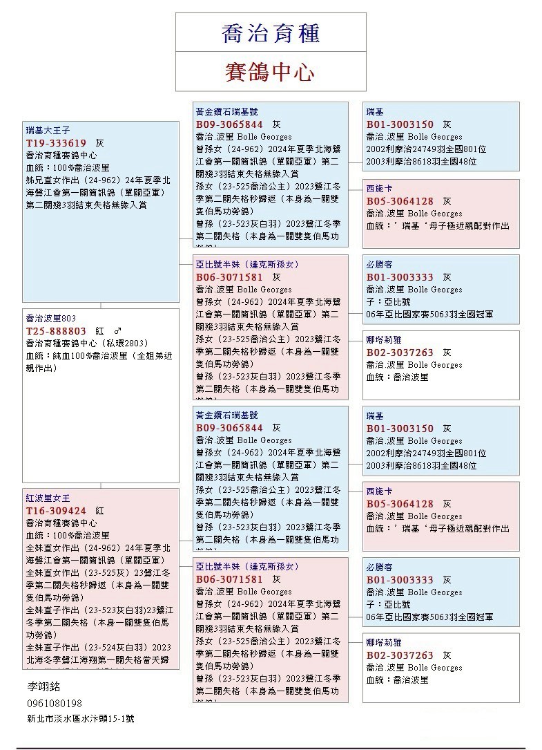 100%喬治波里(全姐弟近親作出);同輩24年北海鷺江簡訊鴿(單關亞軍)