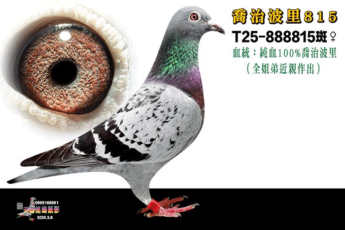 100%喬治波里(全姐弟近親作出);同輩24年北海鷺江簡訊鴿(單關亞軍)