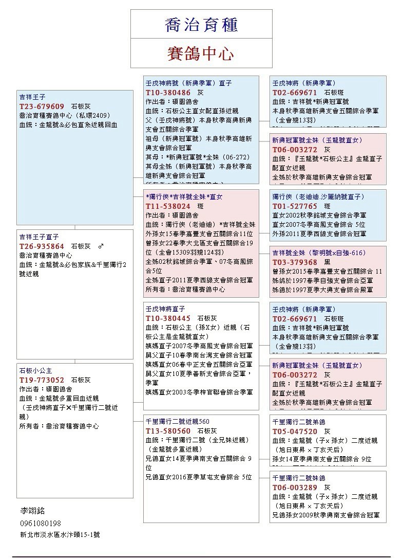 第一關單關99位、129位、142位、159位、166位(集鴿2265羽歸返189羽,0.8成歸返率,本舍佔5羽,並榮獲雙隻組伯馬賞)