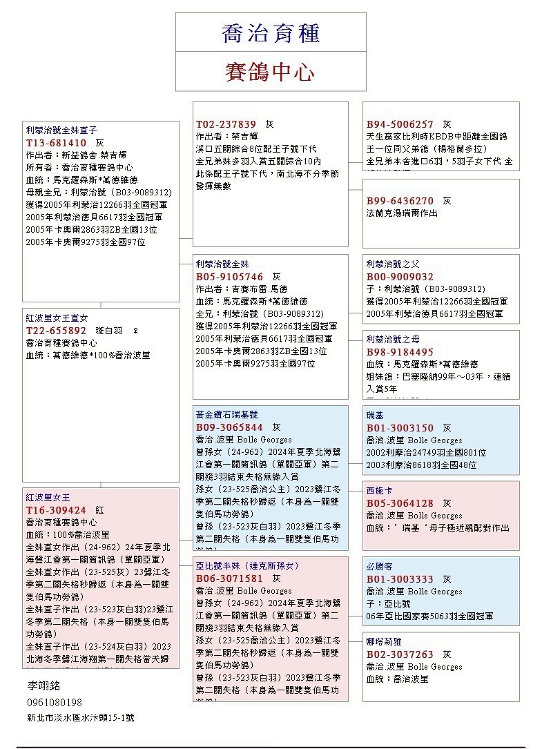 全弟25年春季薪苗2041羽四關綜合32位(殘43羽);江啟鴻阿典哥五金號近親特留