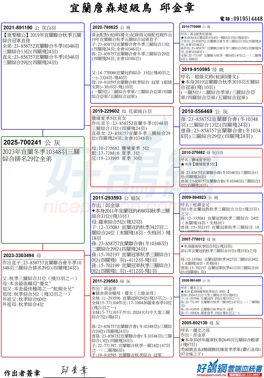 ▲曾祖母:19-910595秋季宜蘭達飛船隊伍關綜合冠軍(拍賣鴿NO207)
