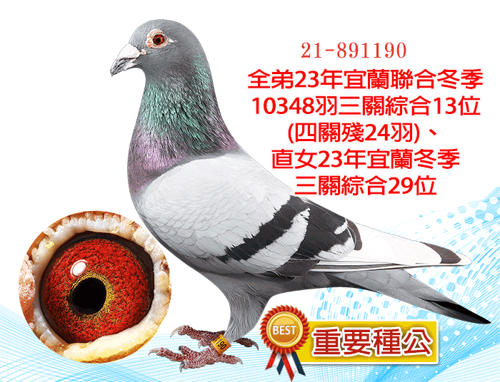 ▲父鴿:21-891190(拍賣鴿NO232)