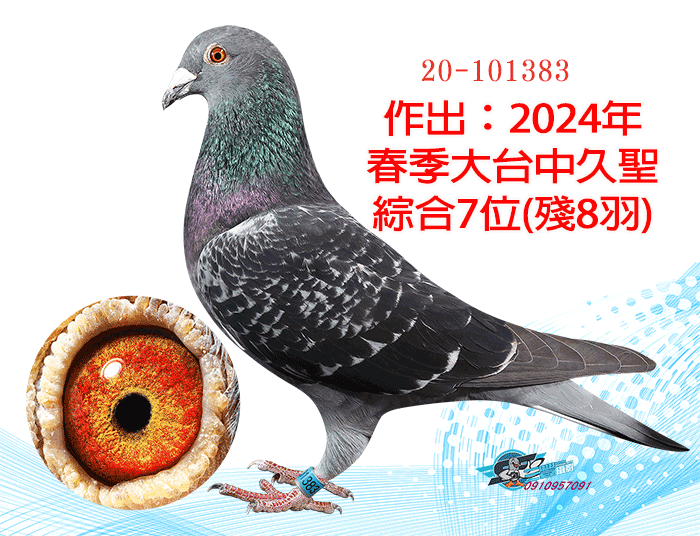 2024年北海春季台中久聖三關綜合7位(殘8羽)種鴿提供