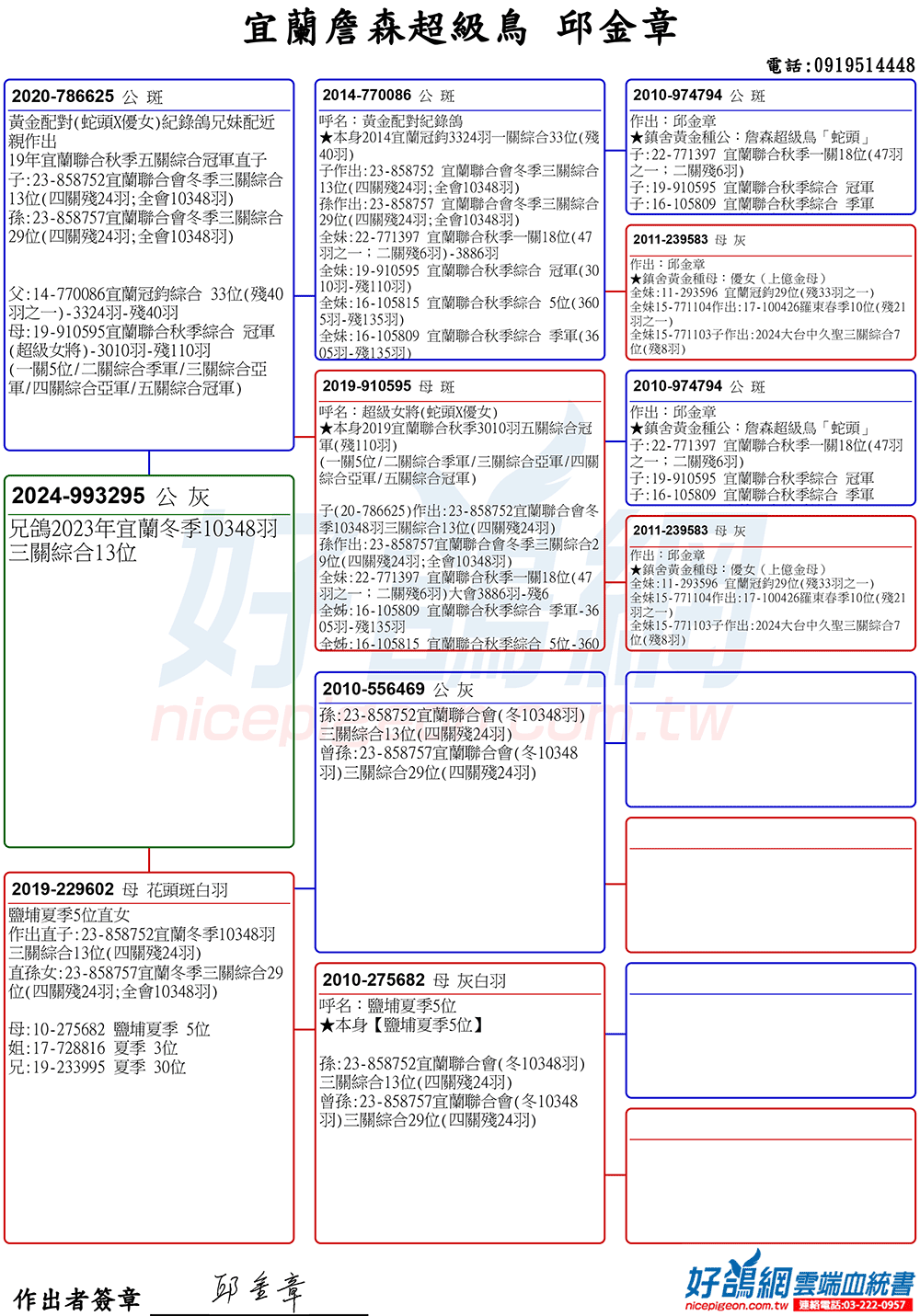 ▲祖母:19-910595秋季宜蘭達飛船隊伍關綜合冠軍(拍賣鴿NO207)