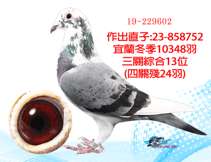 這組黃金配對,不只是宜蘭地區發揮,在2024年大台中久聖春季三關綜合7位(種鴿提供)的殘8羽賽事中也取得優異的成績。