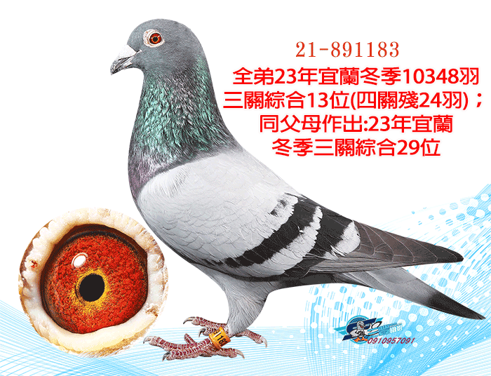 ▲曾祖母:19-910595秋季宜蘭達飛船隊伍關綜合冠軍(拍賣鴿NO207)