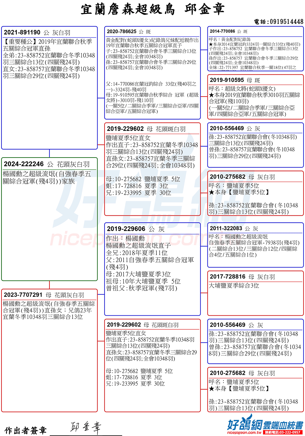 ▲曾祖母:19-910595秋季宜蘭達飛船隊伍關綜合冠軍(拍賣鴿NO207)