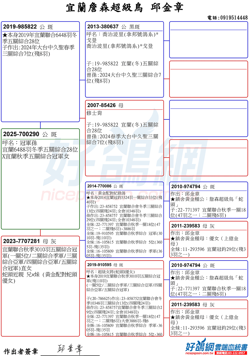 外祖母:19-910595秋季宜蘭達飛船隊伍關綜合冠軍(拍賣鴿NO207)