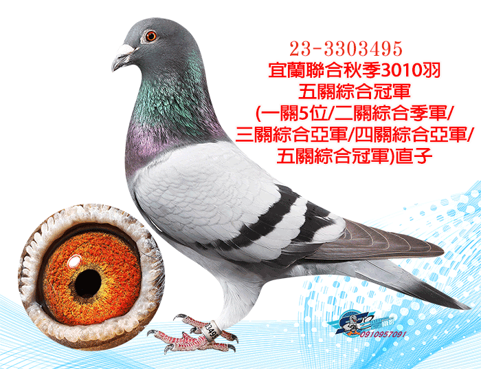 ▲祖母:19-910595秋季宜蘭達飛船隊伍關綜合冠軍(拍賣鴿NO207)