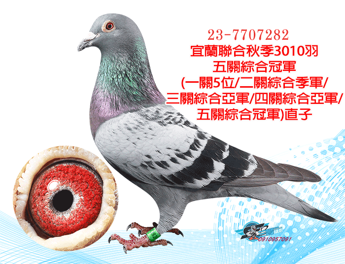 祖母:19-910595秋季宜蘭達飛船隊伍關綜合冠軍(拍賣鴿NO207)