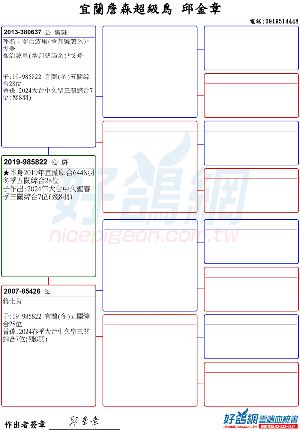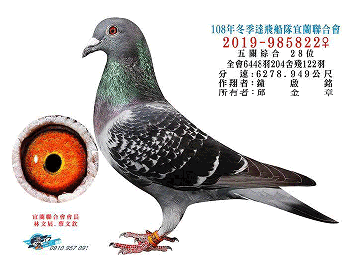 這組黃金配對,不只是宜蘭地區發揮,在2024年大台中久聖春季三關綜合7位(種鴿提供)的殘8羽賽事中也取得優異的成績。