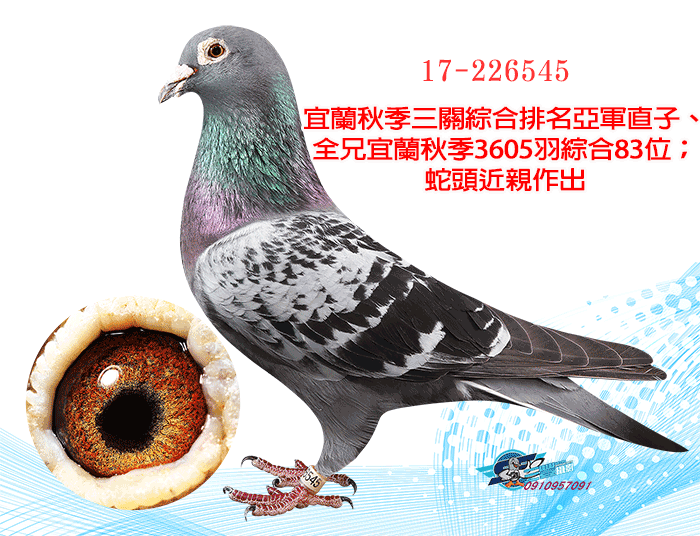 ▲父鴿:17-226545(拍賣鴿NO95)