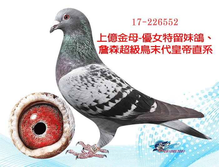 邱董分享,詹森超級鳥這個系統融合性佳、聰明加上長壽健康的機率高,更能讓超級鳥蛇頭X上億金母優女這個黃金組合,能持久且穩定的作出許多優秀入賞鴿與下代。