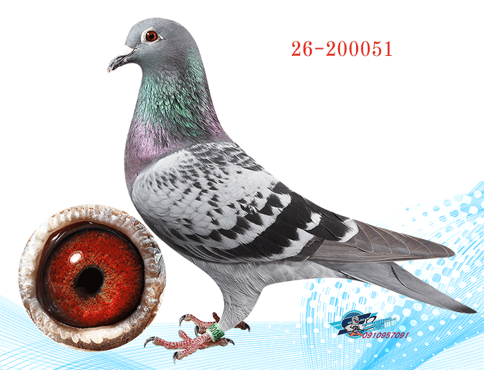 超級鳥原配對出自父鴿“斑格51”B51-6117447BC♂直孫,並與“老麥克斯”、“冠軍74”、“20號”等為堂兄弟鴿,牠是詹森兄弟、克拉克及哈透奇三位大師銘血結晶。