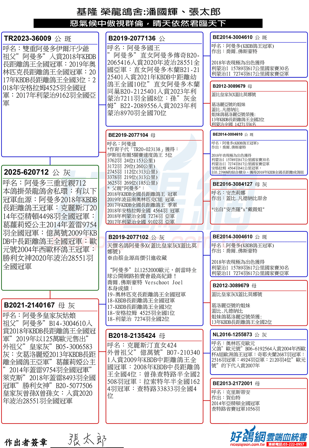 KBDB長距離鴿王全國冠軍“阿曼多”(直子X直女)近親直孫X直孫女三重近親作出