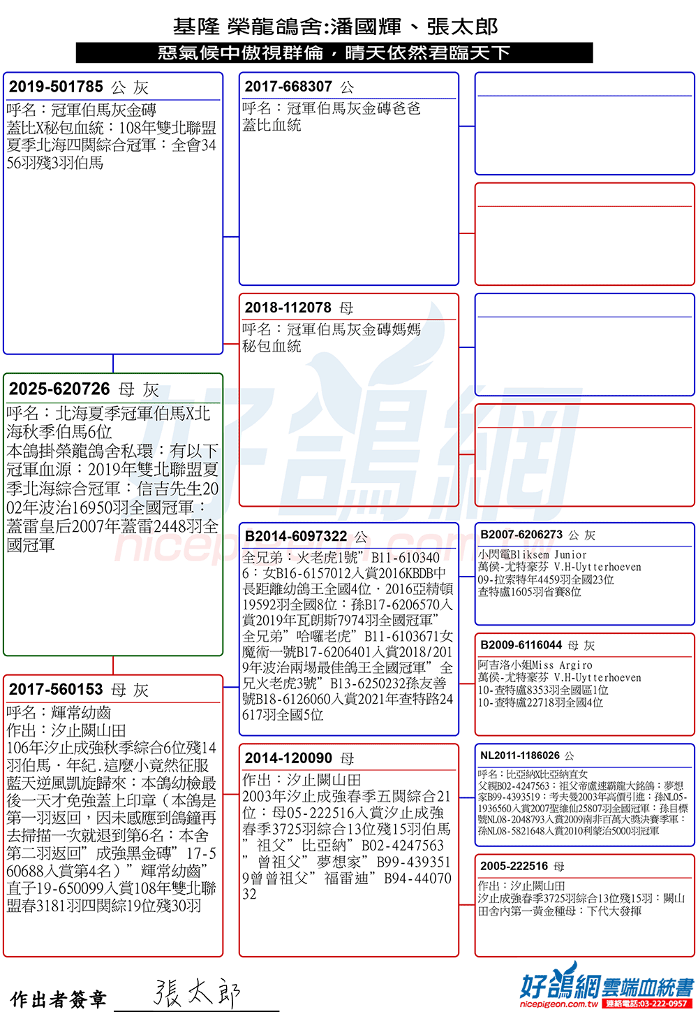 ▲父鴿:19-501785冠軍伯馬灰金磚