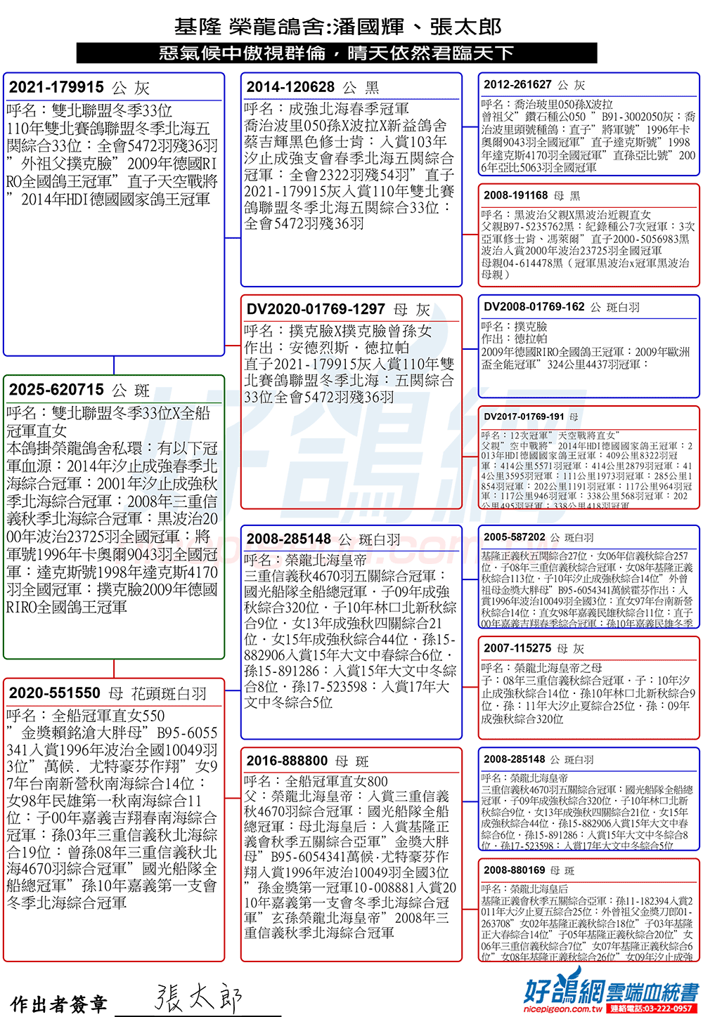 ▲B96-4300795真命天子:入賞2000年波品納6246羽全國冠軍.國際18426羽亞軍
