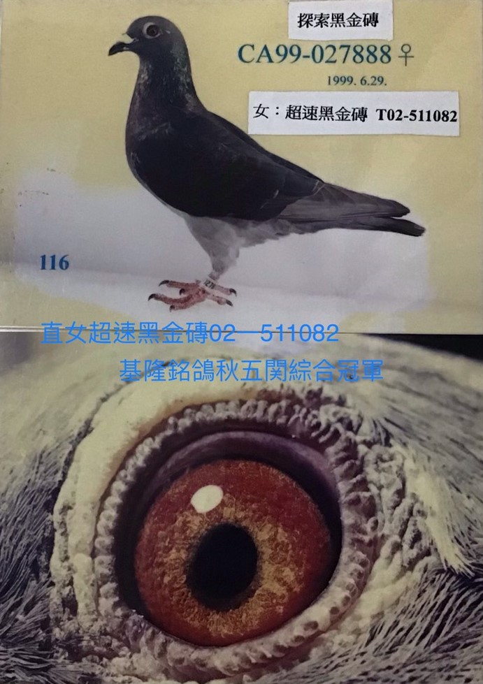 ▲02-511082超速黑金磚-秋季基隆銘鴿五關綜合冠軍