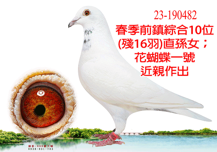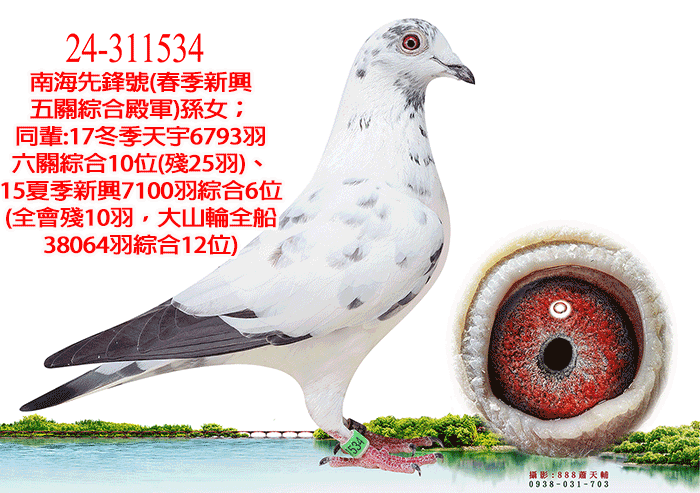 來自英國卓越育種中心,為速霸龍第17配對直孫×長距離鴿王省賽冠軍直女所作出。