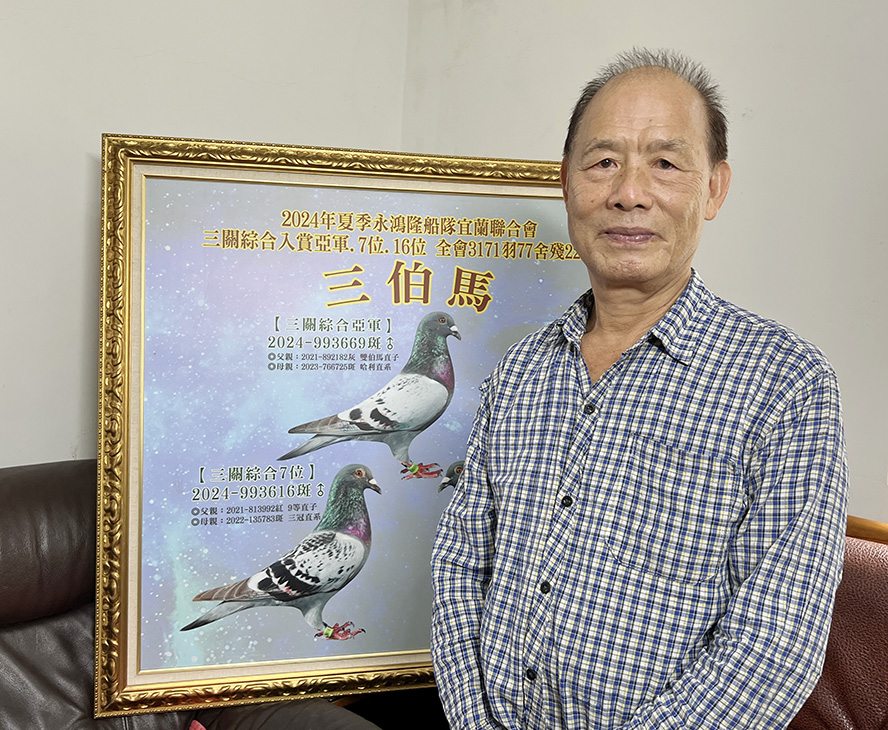 2025年夏季宜蘭聯合會二關綜合8位,環號25-137047灰♂,其父鴿24-993616斑♂,本身入賞夏季三關綜合7位(群益冠軍家族X小火箭三冠家族),母親24-333022,血統為夏季三關綜合亞軍全妹(雙伯馬家族X哈利近親)所作出,許銘財又一次以實戰成績印證了優質血統一脈相承的可貴。
