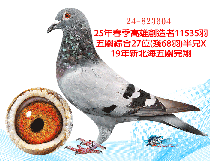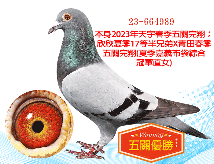 【完翔鴿】本身2023年天宇春季五關完翔;欣欣夏季17等半兄弟X青田春季五關完翔(夏季嘉義布袋綜合冠軍直女)