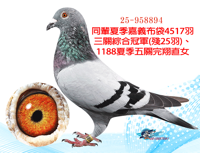 夏季嘉義布袋4517羽三關綜合冠軍(殘25羽)近親作出