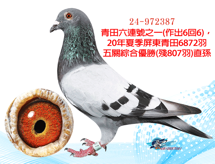 青田六連號之一(作出6回6),20年夏季屏東青田6872羽五關綜合優勝(殘807羽)直孫