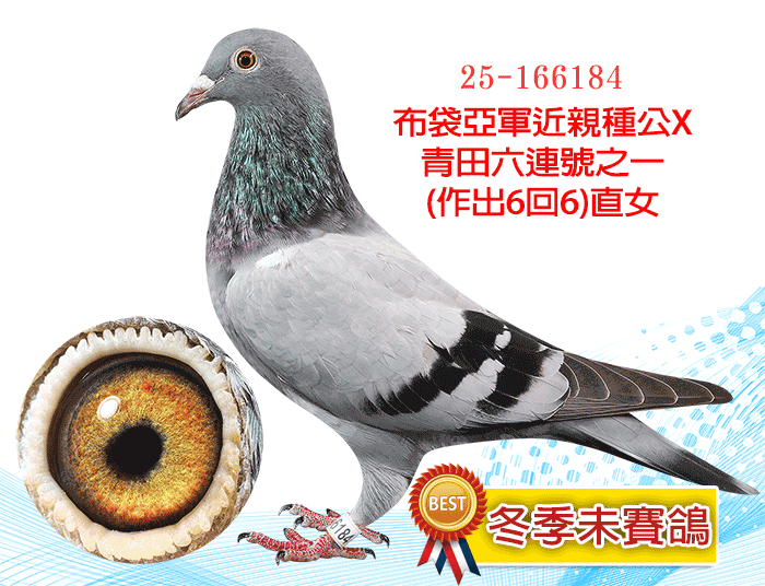 【北海冬季未賽鴿】布袋亞軍近親種公X青田六連號之一(作出6回6)直女