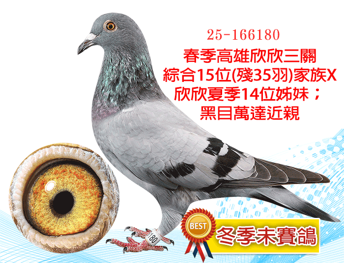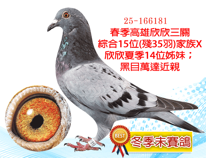 【北海冬季未賽鴿】春季高雄欣欣三關綜合15位(殘35羽)家族X欣欣夏季14位姊妹;黑目萬達近親