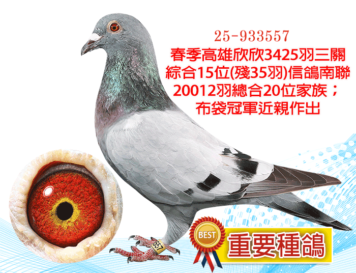 【特留種鴿】春季高雄欣欣3425羽三關綜合15位(殘35羽)信鴿南聯20012羽總合20位家族;布袋冠軍近親作出