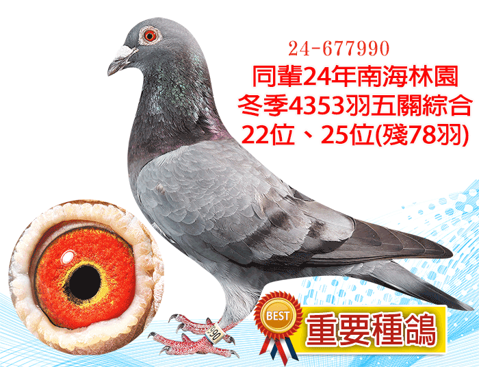 24年南海林園冬季4353羽五關綜合22位、25位(殘78羽)家族