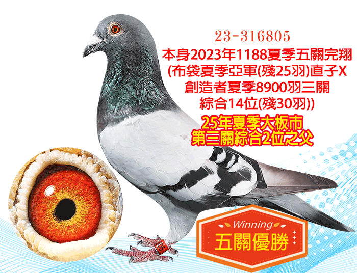 【大板市第三關綜合2位之父】本身2023年1188夏季五關完翔(布袋夏季亞軍(殘25羽)直子X創造者夏季8900羽三關綜合14位(殘30羽))