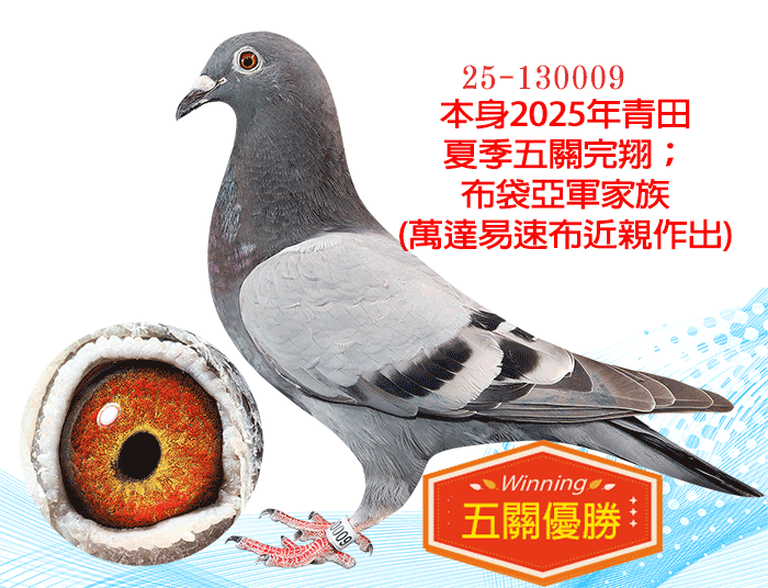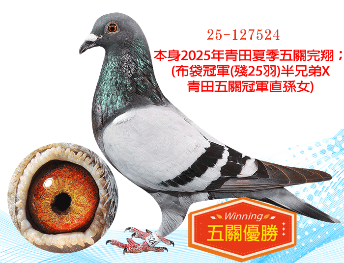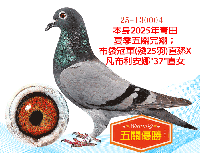 【完翔鴿】本身2025年青田夏季五關完翔;布袋亞軍家族(萬達易速布近親作出)